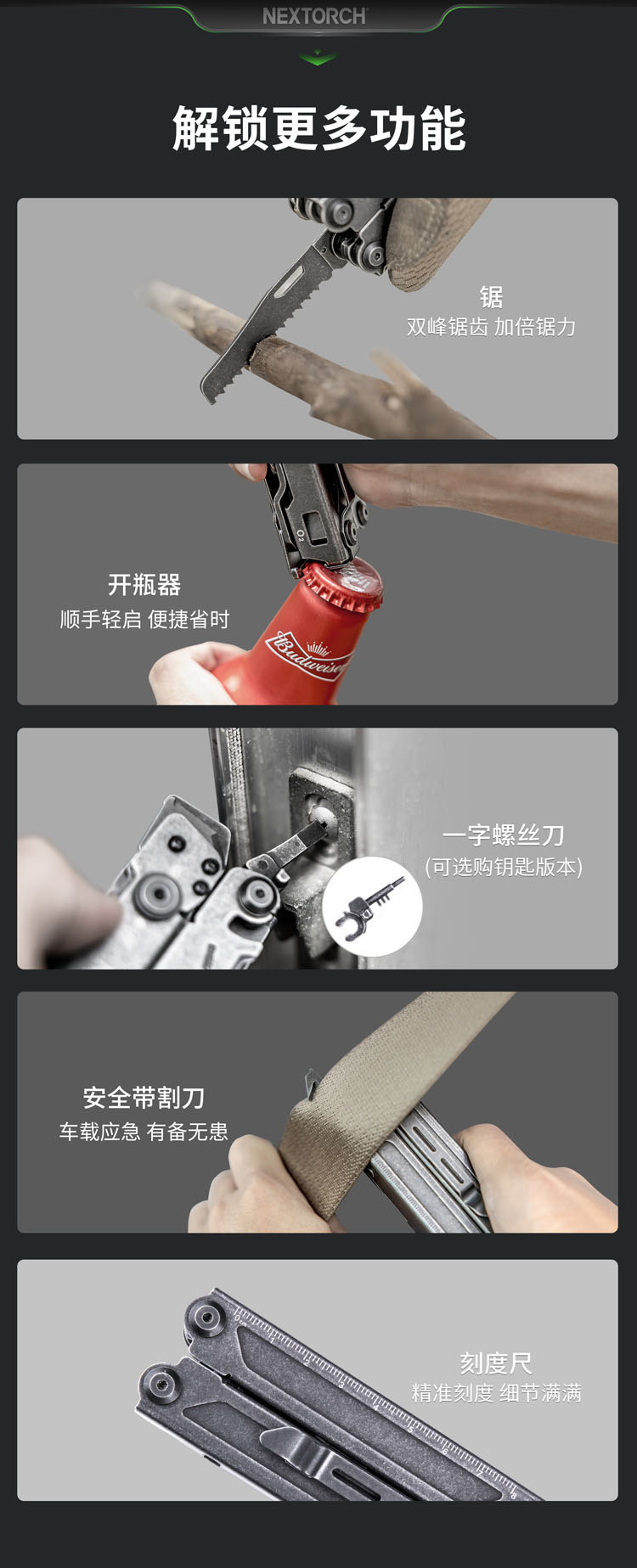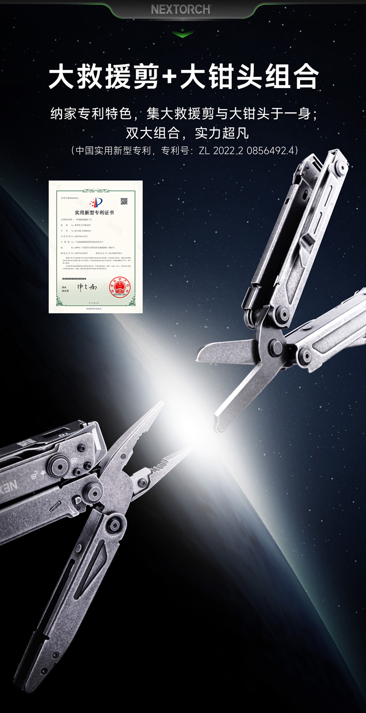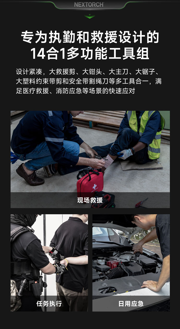 先锋钳剪集成了警员、救援人员、消防员的装备和任务需求,同时结合广泛的研究和KOL用户的反馈,创新性地将传统的多功能钳和救援剪的功能完美融合于一身,使其具备更全面的应对能力,成为既强大又便携的随身专业多功能工具。